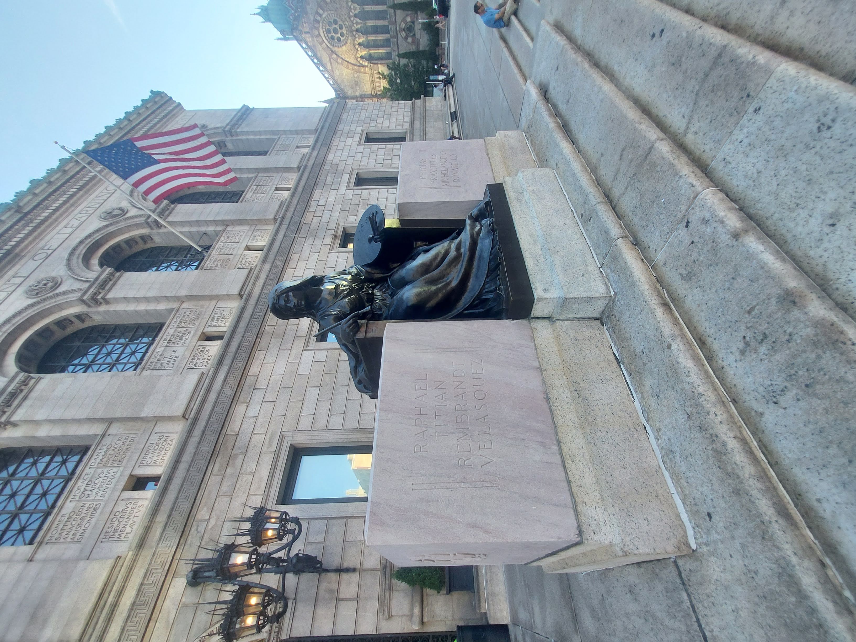 Going into the lobby, each of the bronze doors represent a genre of literature. The genre is listed at the top of the doors but I forget which genre this lady represents. It looks like she’s holding a lyre, but music isn’t really a genre: